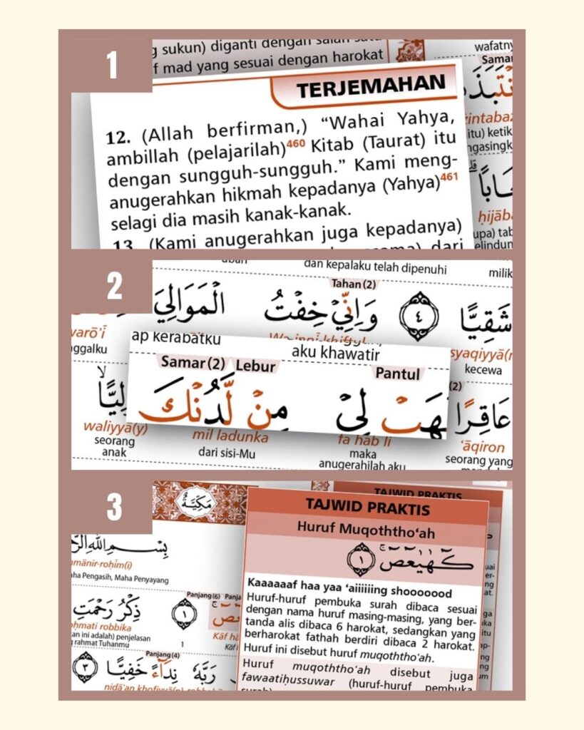 Dirancang khusus untuk memudahkan pembelajaran mandiri dengan fitur-fitur yang tidak ditemukan di Al-Qur’an biasa.